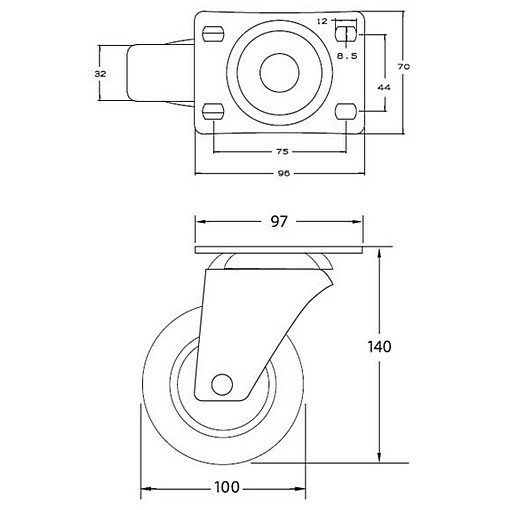 Castor 100mm Swivel. Heavy Duty. 110kg Rated quantity