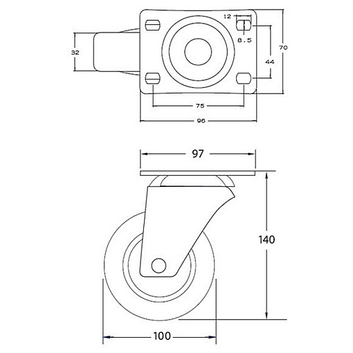 110kg Rated Single Wheel Grey Polyurethane Tyre Brake Locks Both The Swivel And Rolling Motions