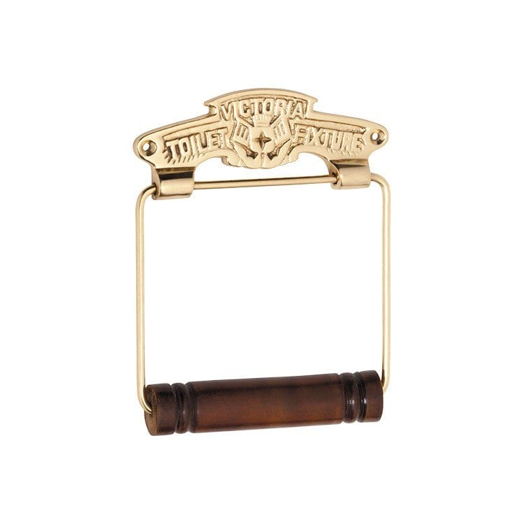 4883 – Toilet Roll Holder – Victoria – Polished Brass – 120mm (W) and 150mm (H) Solid Brass with timber roll