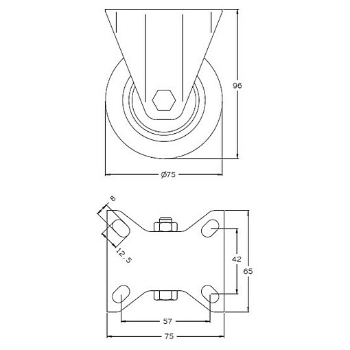 Static Load 40kg Plate Size 70x70mm 96mm Overall Height Single Wheel Black Solid Rubber Tyre