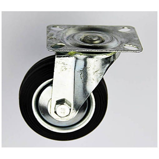 Static Load 40kg Plate Size 70x70mm 96mm Overall Height Single Wheel Black Solid Rubber Tyre