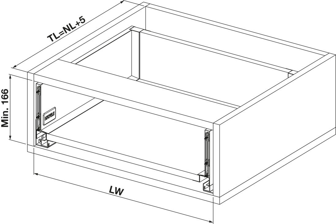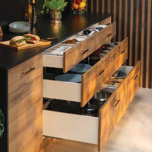 Linear design drawer sides with 13 mm slim wall increases the drawer capacity