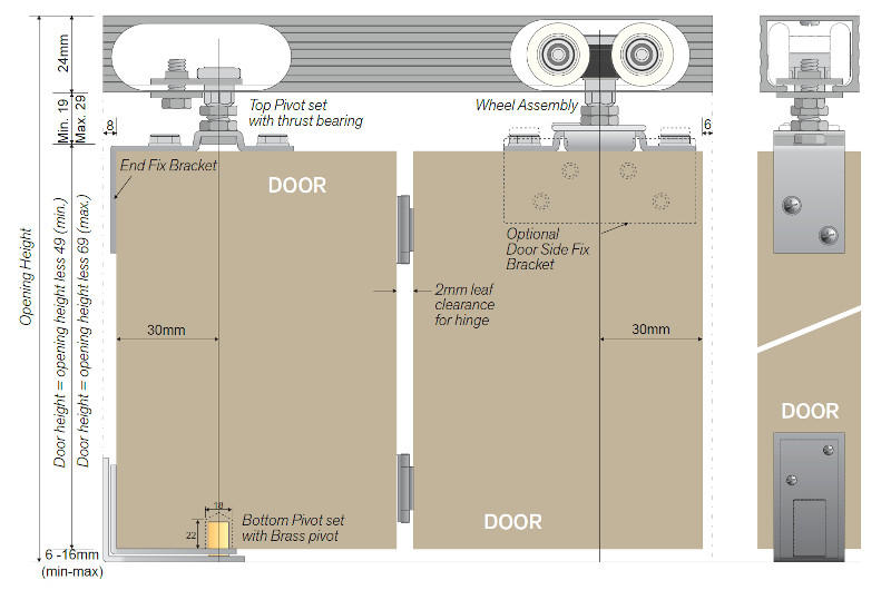 Maximum load 18kg per leaf end pivoted or 25kg centre pivoted