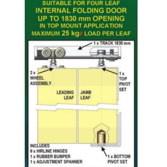 Bifold Door Hardware Set for 4 Doors. 25kg