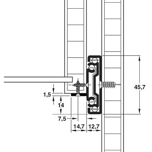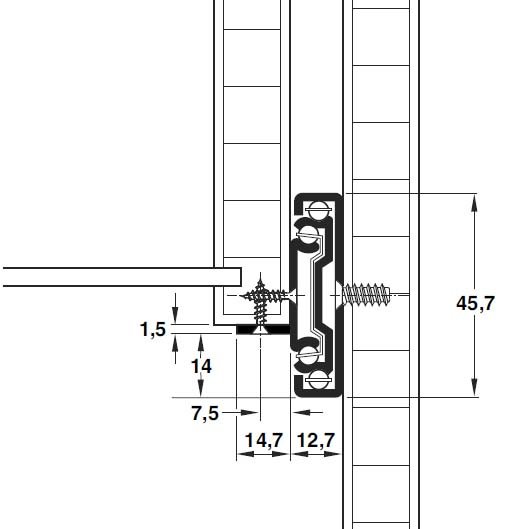 Middle member of the slide has three tabs, so the runner can be secured to the base of the drawer as well as the side.