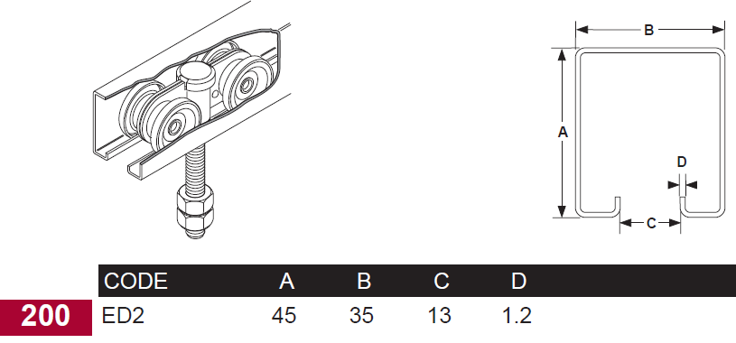 Track dimensions are 3000mm(L) x 45mm(H) x 35mm(W) x1.2mm Thickness