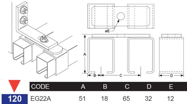 Eltrak EG22A Double Overhead Support Bracket for 120kg Track
