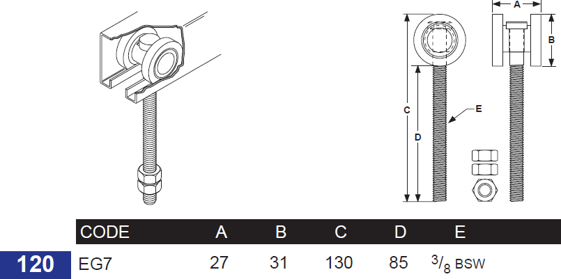 Two Wheel Sliding Door Swivel Carriage. Can be used on the EG2 Eltrak tracks.