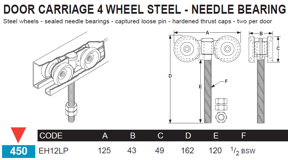 Eltrak EH12LP Four Steel Wheel Carriage – For Doors up to 450 kg