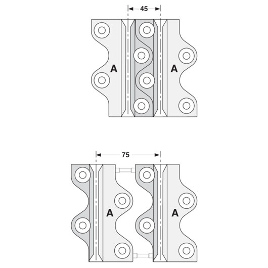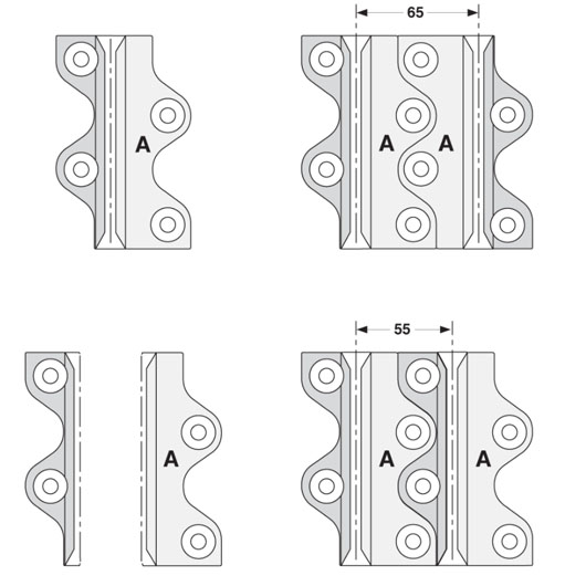 Single Doors Or 45, 55, 65 Or 75mm Door Centres.
