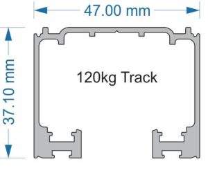 At just 37mm tall and 47mm wide this track is capable of carrying a door, or panel, that weighs 120kg.