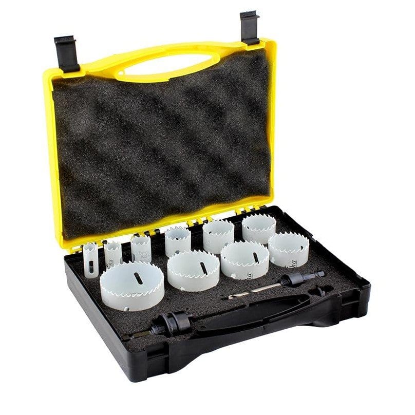 16, 19, 22, 29, 35, 38, 44, 51, 54, 64mm Holesaws Adapter, Small And Large Quick Release Arbors 4 /6 Variable Tooth Hole Saws Ensure Fast, Accurate Hole Cutting In Tough, Fracture Resistant HSS Bi-Metal Maximum Cutting Depth For All Sizes Is 32mm Recommended For Steel, Cast Iron, Lightweight Alloys, Aluminium, Brass, Wood And Plastics