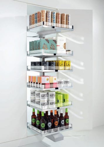 Includes five adjustable Chrome and White, anti-slip base and glass trays