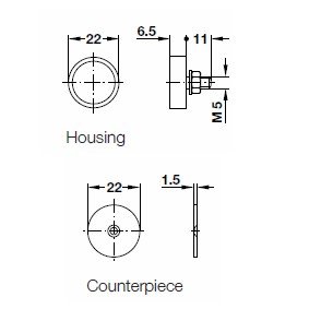 Catch housing has M5 threaded pin Counterpiece has hole for screw