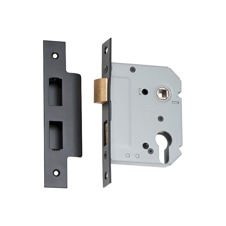 Tradco 2185. Mortice Lock Euro Matt Black CTC47.5mm Backset 57mm
