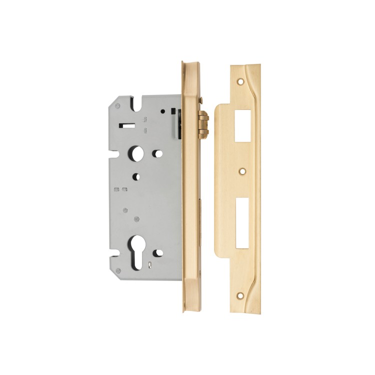 Mortice Lock Roller Euro Rebated Satin Brass CTC85mm Backset 60mm