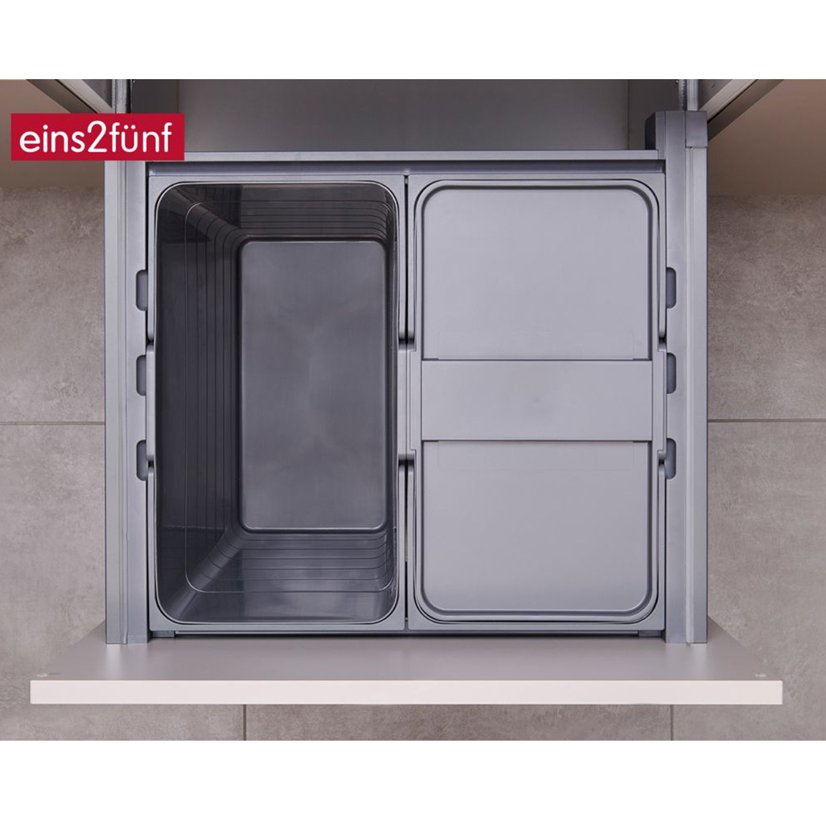 Hanging frame and bins, waste bags strongly fixed by means of carrying handles.