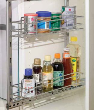 Left or Right mounting with two fully adjustable chrome plated baskets Minimum Internal Cabinet Width 268mm Minimum Internal Cabinet Depth 480mm Modular Cabinet Size 300mm Height 570mm Suggested loading 30kg For use with an integrated pull-out front
