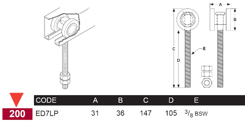 Two Wheel Sliding Door Swivel Roller. Can be used on the 200kg Eltrak tracks.