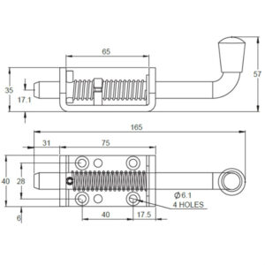 Spring Bolt 150mm. Plate 70x40mm. Stainless Steel. 30mm Projection