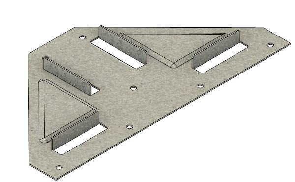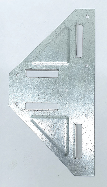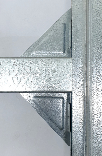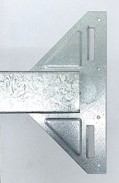 Tee bracing bracket for Eltrak sliding door framing system. These brackets provide a bracing that is situated between the top and bottom perimeter elements of the door.