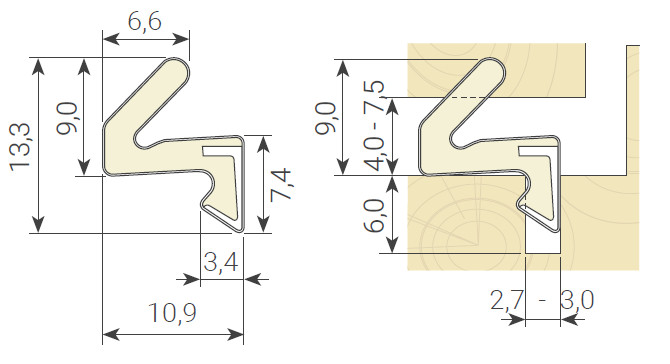 Simply fits into a slot or channel that you cut with a blade that has a 3.2mm kerf.